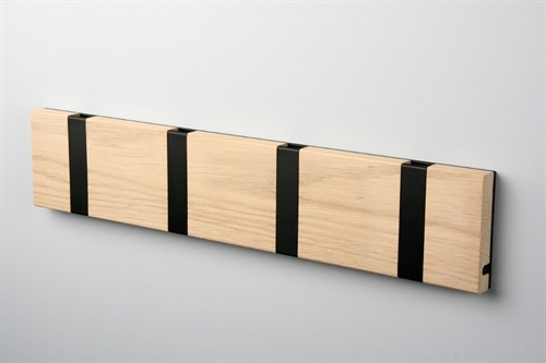 Super flot og elegant knagerække fra KNAX. Knagerækken kommer i en flot eg brun farve, og har sorte knager. Den er stilfuld og dermed kan den bruges i mange indretninger.