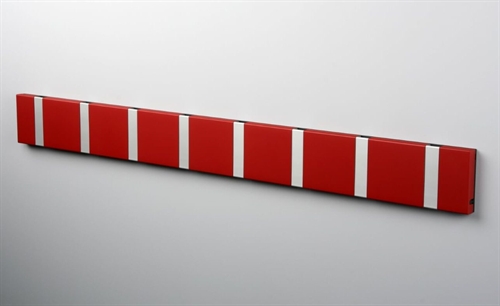 Super flot og elegant knagerække fra KNAX. Knagerækken kommer i en smuk rød farve og har grå knager. Den er stilfuld og dermed kan den bruges i mange indretninger. Brug knagerækken i entréen, stuen, soveværelset eller måske køkkennet. Knagerækken er 79,2 cm lang og 7,9 cm høj. Knagerækken har 8 knager. Alle knager er med vippefunktion.