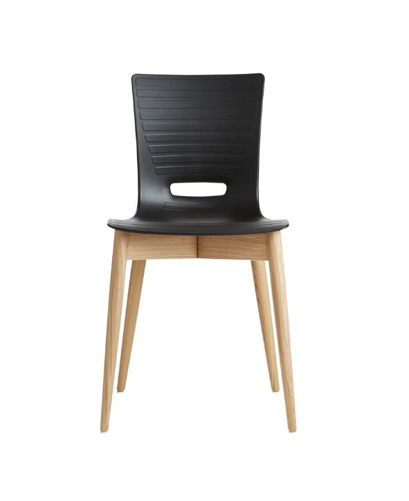 Billedet viser stolen med træben og ikke med sortlakerede træben som stolen kommer med.