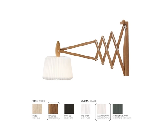 Le Klint 223 - 120 Saxlampe til væg H: 31 cm - Røget Eg / Silk White Papirskærm Farven "røget eg" og farven på skærmen er markeret på billedet Den originale Se mere ...