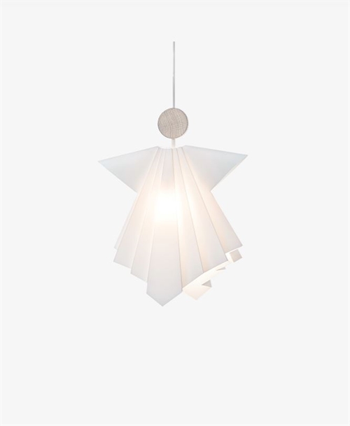 Englene er udført efter de gamle foldeteknikker, i et stramt og enkelt design, og fremstillet i samme kvalitetsmaterialer som vi kender fra de verdenskendte håndfoldede lampeskærme fra LE KLINT.