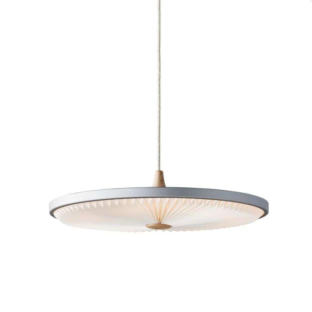 Smuk lampe fra Le Klint. Den flotte Soleil lampe er designet af Philip Bro. Han vil beskrive pendlen som en nyfortolkning af den klassiske plisséskærm, nu i en smuk forening med andre materialer som aluminium, papir, hør og egetræ. Lampen har en LED lyskilde som er langtidsholdbar og kan udskiftes.