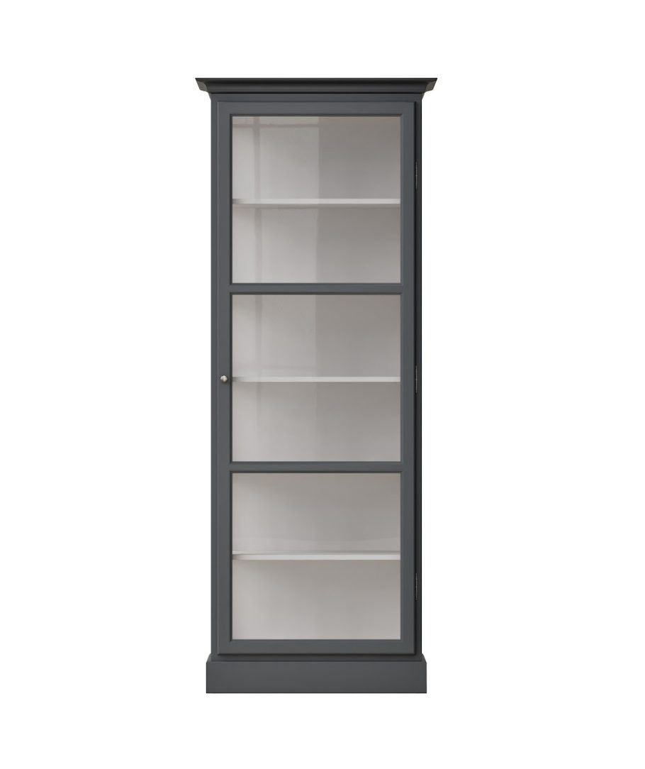 Lindebjerg Design Classic V1 Vitrineskab Højre-hængt Dør 70x210 cm - Anthracite Skønt vitrineskab fra Lindebjerg Design i malet fyrretræ og glas i siderne. De Se mere ...