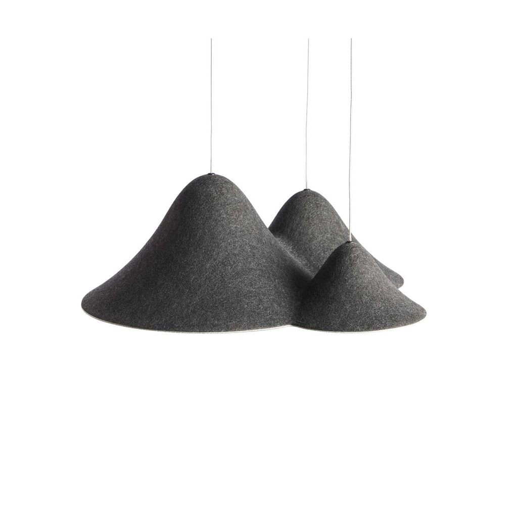 Panorama pendlen fra LOOM Design er en fusion af funktionalitet og æstetik, dette kunstværk fanger naturens skønhed med sin fortryllende grønne overflade og sofistikerede grå indvendige finish. Panorama er inspireret fra de rolige landskaber og ønsket om at bringe naturens harmoni ind i dit hjem. Med sine tre elegant hævede bakker efterligner den naturlige panoramaer og skaber en visuelt fortryllende oplevelse. Lamperne i Panorama serien er omhyggeligt fremstillet af materialer af høj kvalitet som filt, akryl og aluminium. Den indbyggede LED-teknologi giver et varmt lys, perfekt til enhver lejlighed. Lampen fås i flere størrelser og farvekombinationer og Panoramas tilstedeværelse vil forvandle ethvert rum til et levende kunstværk.