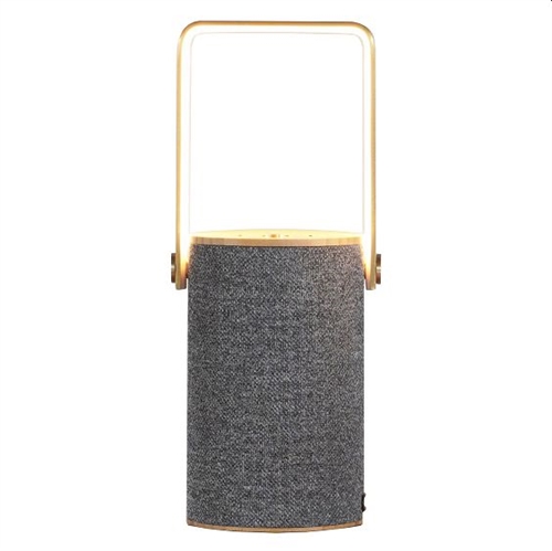 Silo 1 Bluetooth højtaler med håndtag, giver dig både lyd og lys i et lækkert design. Du får underholdning og lys i 4-6 timer uden at du skal have en stikkontakt på dig, og ladetiden er 3-4 timer. Silo 1 højtaleren er perfekt til havehygge, camping eller noget helt andet. Den har grå hessian betræk og bambus træ i top og bund. I håndtaget er der LED-lys og på trætoppen sidder der en tænd/sluk knap i messing samt 4 sorte knapper til anden betjeninng.