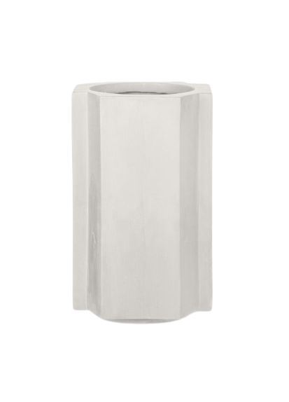 Funki Pots kommer i tre forskellige størrelser – small, medium og large. Denne model er den mindste og passer perfekt til blomster, men fungerer også som en skulptur alene. Alle Funki Pots er håndlavet og glaseret i Portugal, hvor de arkitektoniske former bliver til. Der betyder, at hver enkelt potteplante kan have små variationer og skævheder – det er en del af charmen ved håndlavede produkter. Alle Funki Pots er frostsikre og kan derfor tale udendørs brug.