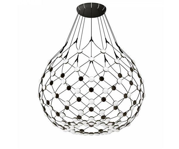 Fra Luceplan kommer den spændende og unikke Mesh Lysekrone. Den har et dramatisk og nærmest teatralsk udtryk med sin volumen, mens den stadig formår at have en lethed og transparent effekt med sit netværk af kabler med LED-kilder. Kablerne er placeret ved deres skæringspunkter, så de skjuler designets kompleksitet. Lampens primære fokus, som øjet fanger ved første øjekast, bliver dermed det vigtigste: lyset. LED-kilderne optimerer på denne måde spredningen af lys og giver hver af disse lyspunkter sin egen karakter. Mesh lampen er både fleksibel, funktionel og æstetisk med sit design, der vil tilføre dit hjem en sofistikeret atmosfære.