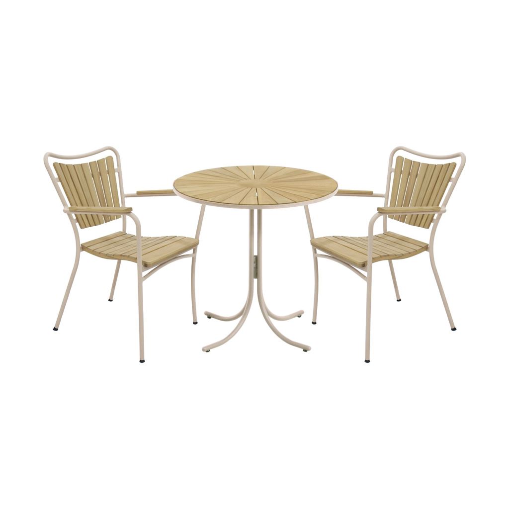Mandalay Marguerit Cafébord Ø: 70 cm Inkl. 2 Havestole Havemøbelsæt - Taupe/Teak