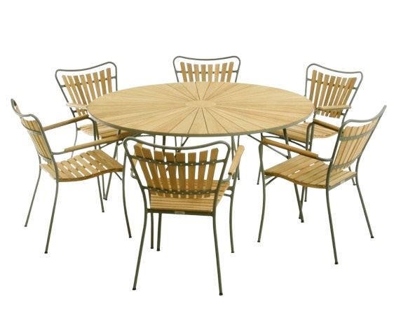 Dette havemøbelsæt består af 6 stk. havestole og 1 bord i 140 diameter.