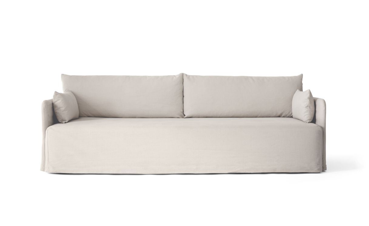 Offset Sofa med Løst Betræk fra Audo og designet af Norm Architects skiller sig ud på holdbarhed, funktionalitet og alsidighed. Det gør den grundet et aftageligt og vaskbart ydre, fremstillet af et skræddersyet bomulds- og hørblandet tekstil. Det bløde og naturlige betræk er yderst let at rengøre, og skaber et afslappet men også elegant touch til dit hjem. Da betrækket er aftageligt, vil man kunne skifte det når det bliver for slidt, og stadig beholde sofaen. Hermed er det muligt at forlænge sofaens levetid, og den passer derfor perfekt ind i en livsstil der udvikler sig. Sofaens konstruktion skiller sig ud på sin længe levetid. Rammen på Offset Sofaen er konstrueret af træ, og ryg- og sidepuderne er lavet af en dobbelt skumkerne, der er indkapslet i en dun- og skumblanding for ekstra komfort og holdbarhed. Betrækket kan tage af ved hjælp af et skjult og super funktionelt velcrobånd.