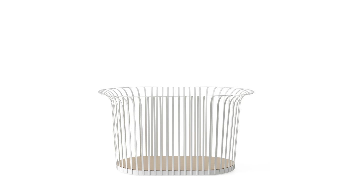 Ribbon Basket fra Audo, giver dig muligheden for at opbevare plaider, puder, magasiner eller måske børnenes legetøj på en moderne måde. Kurven er lavet af pulverlakeret stål, med bløde kurver. I bunden er kurven polstret med tonalæder for at give en eksklusiv udstråling.