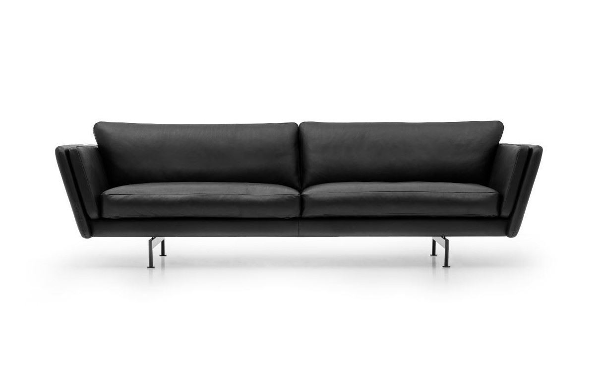 Mogens Hansen MH GRASP L Sofa L: 223 cm - Sort Baltique Luksuslæder/Runde ben i Børstet Stål