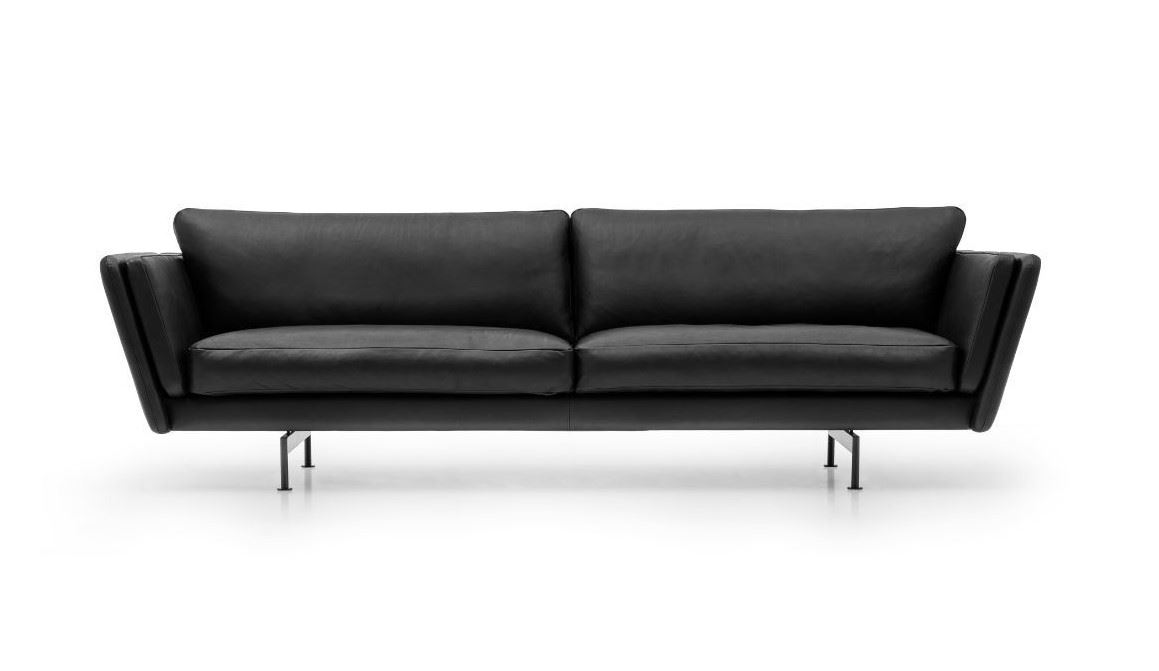 Mogens Hansen MH GRASP XL Sofa L: 243 cm - Sort Baltique Luksuslæder/Runde Ben i Børstet Stål