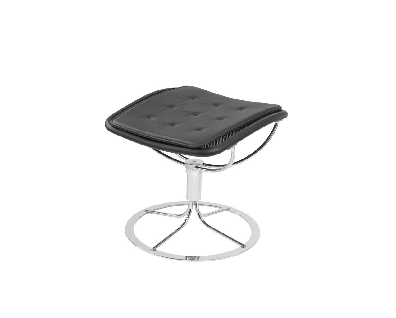 Klassisk kvalitetsfodskammel designet af Bruno Mathsson. Fodskamlen passer til Jetson Classic lænestolen og er lavet af massiv forkromet stål. Fodskamlen er polstret med sort blødt læder og har 9 stikninger øverst.