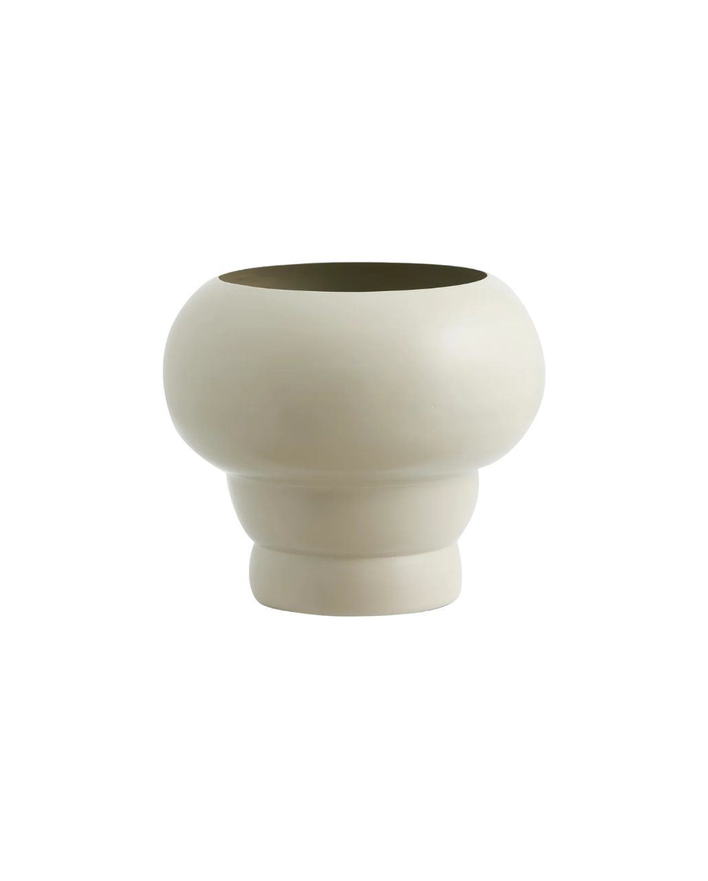 AVES potteskjuleren i gråligt metal er en perfekt kombination af funktionalitet og æstetik, der forener sig i et organisk design. Med dens bløde former og naturlige farvetone tilføjer den et strejf af ro og harmoni til dit hjem.