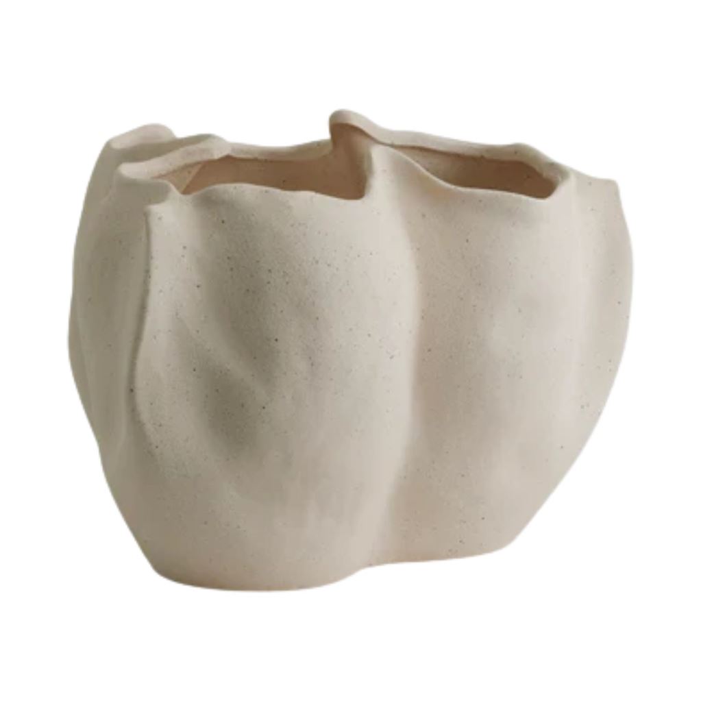 Denne elegante vase er fremstillet af keramik i en smuk cremefarve, der giver et diskret og stilfuldt udtryk. Den organiske og bløde form tilfører et kunstnerisk præg, der gør vasen til et dekorativt element i ethvert rum. Perfekt som en selvstændig skulptur eller til at fremhæve dine yndlingsblomster. Med sit tidløse design passer den nemt ind i både moderne og klassiske indretninger og skaber en harmonisk balance mellem enkelthed og elegance.