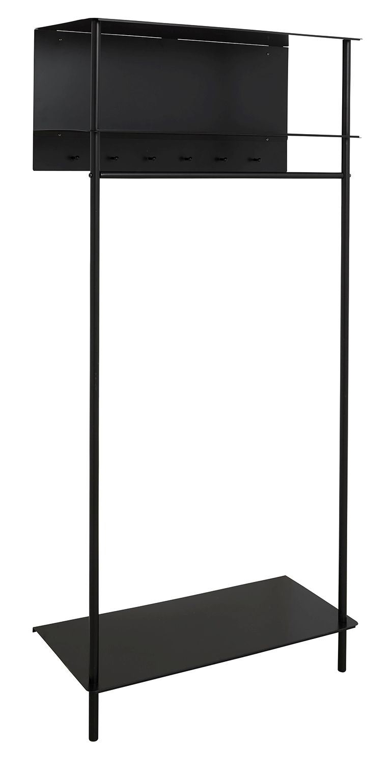 SETUN fra Nordal er et tidløst garderobestativ sort pulverlakeret metal. Designet er enkelt og moderne og monteres let med medfølgende skruer. SETUN er ideel til entréen, soveværelset eller garderoben. Brug det til at hænge skjorter og jakker op på enten knager eller bøjlestang og opbevar dine sko og dagligdags ting på hylderne. SETUN leveres usamlet.