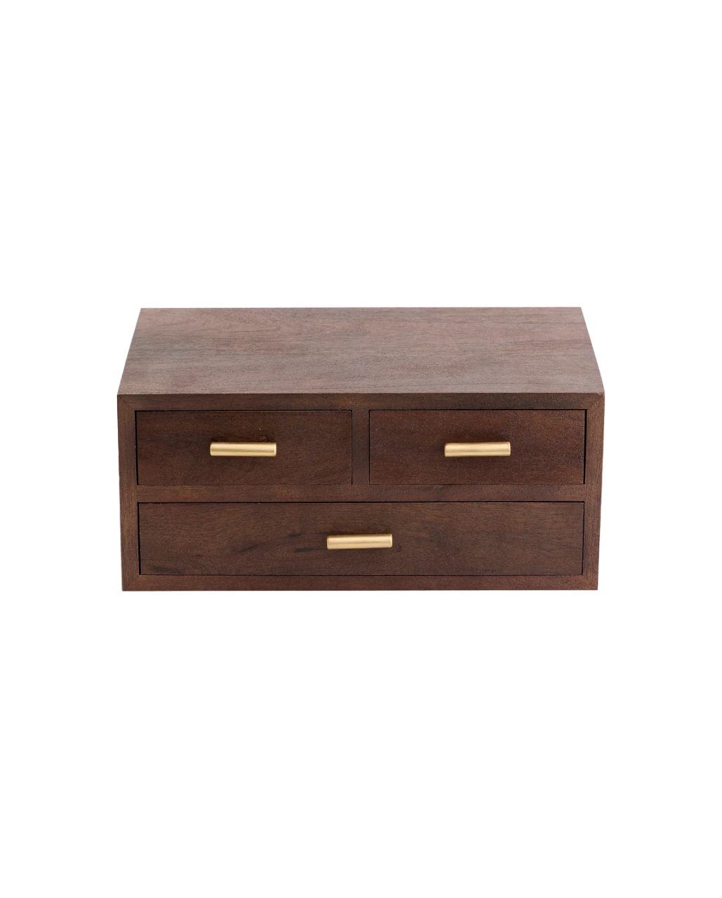 SUVA opbevaringsæsken er et stilfuldt og praktisk opbevaringsløsning, der tilfører en elegant touch til enhver indretning. Lavet af mørkt bejdset mangotræ og udstyret med et smukt messingfarvet håndtag, udstråler denne opbevaringsæske en varm og indbydende atmosfære.