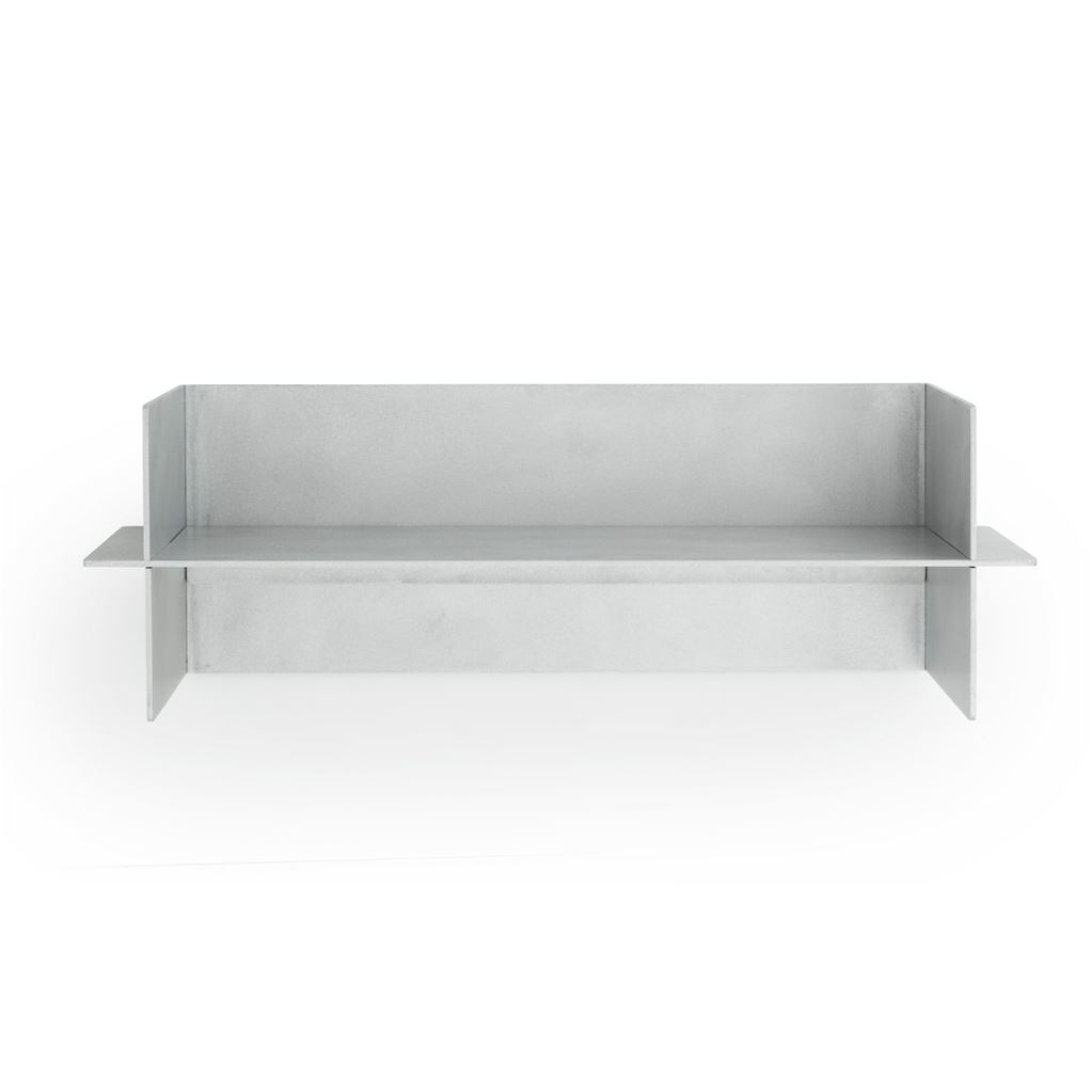 Alu hylde er en enkel og robust hylde, skabt af sammenlåsende aluminiumplader, der sikrer høj stabilitet. Den børstede overflade, beskyttet af en klar lak, kombinerer et elegant udtryk med et råt, industrielt præg. Hylden er designet til nemt at indgå i mange forskellige indretninger.