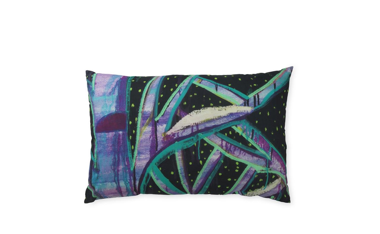 Denne pude fra Normann Copenhagen og det matchende tæppe er designet af kunstneren Ryan Schneider. De er baseret på hans værk 'Pipes Canyon Peepers' fra 2016, der er inspireret af det Californiske nattebillede. Værket kommer smukt til sin ret på puden, så vel som sengetæppet. Tilføj det unikke sceneri til soveværelset for en beroligende og naturgivent atmosphere.