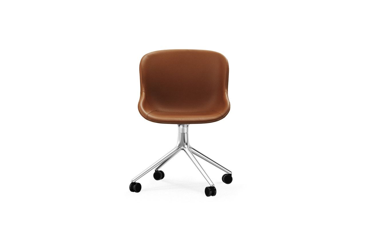 Normann Copenhagen Hyg Drejestol m. Hjul Fuldpolstret - Brandy Læder/Aluminium