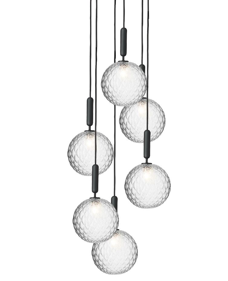 Nuura Miira 6 Large Pendel Ø: 47cm - Rock Grey/Optic Clear