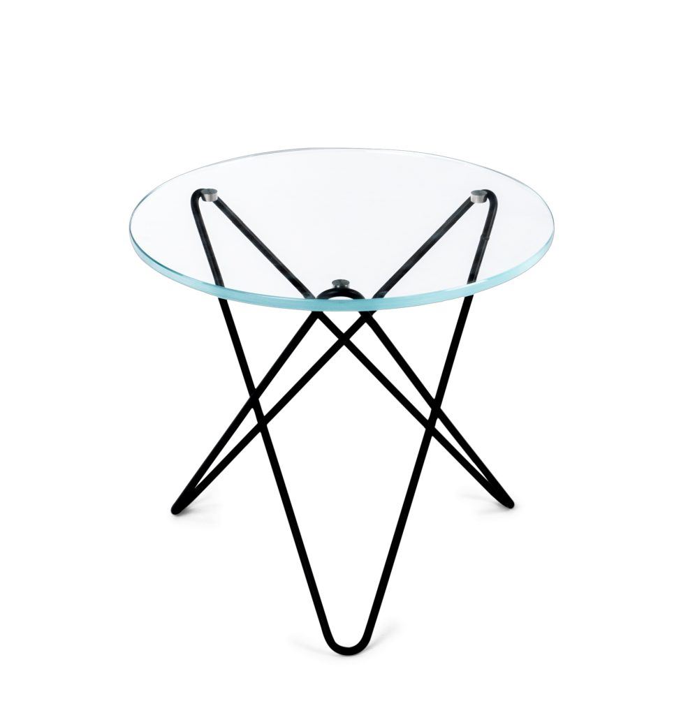 OX Denmarq MINI O Table Ø: 40 cm - Black Powder Coated Steel/Clear Glass