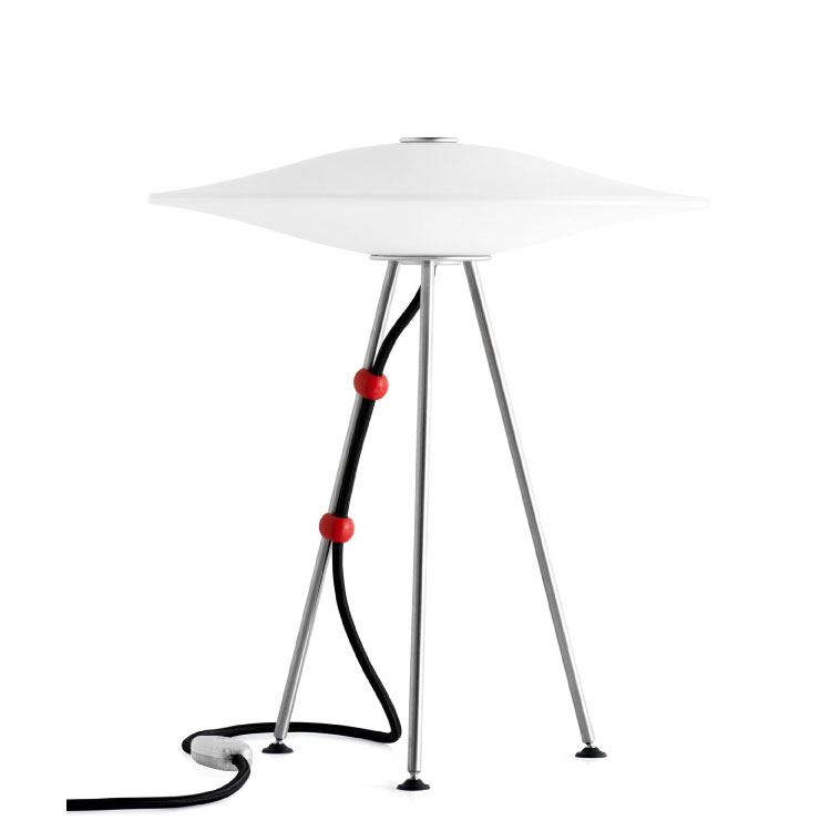 Piet Hein designede den unikke Sinus lampe i 1979. Piet Hein havde stor interesse i geometri og matematik og dette afspejles også i Sinus 330 bordlampen. Formet i den udfordrende slumpningsmetode, hvor glasset blødgøres og formes i ovnen, sikrer Sinus det perfekte lys samtidigt med at skærmen fremstår som en svævende skulptur i rummet. Bordlampens skærm har en diameter på 33 cm, og en 2,5 meter sort tekstilledning med afbryder/dæmper, så du kan indstille lysstyrken lige efter behov. Pære ikke inkluderet.