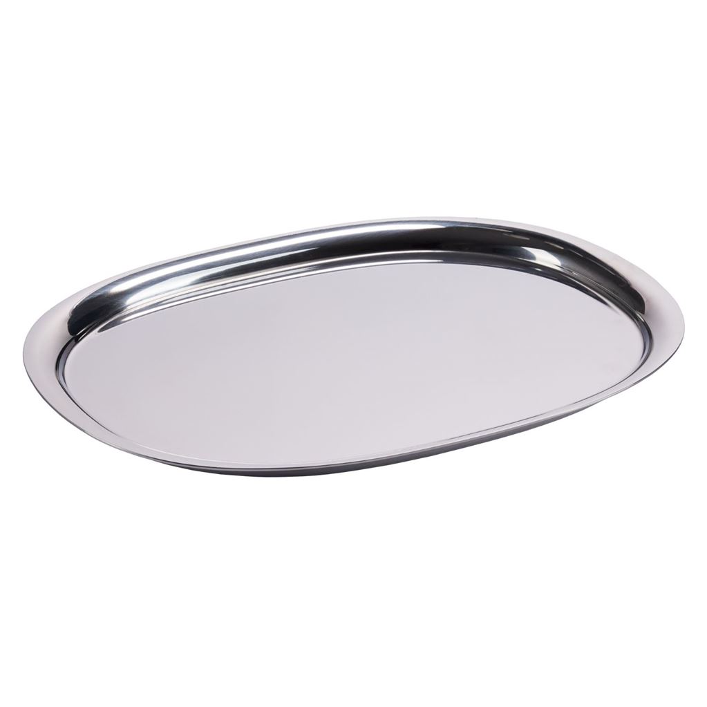 Det ellipseformede serveringsfad af Piet Hein er fremstillet i rustfrit stål og udstyret med en gummibelagt måtte, der sikrer, at tingene står fast. Et elegant og funktionelt fad, perfekt til servering af mindre portioner – eller som bakke til salt- og pebersæt.