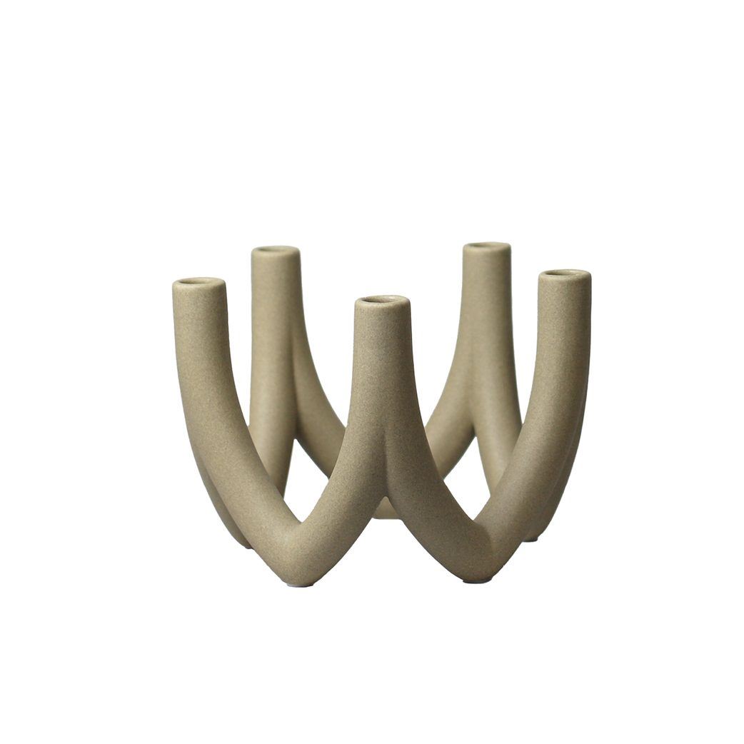 Chandelier lysestagen fra Ro Collection er en smuk og skulpturel lysestage, designet af Rebecca Uth. Chandelier er håndstøbt og dens smukke udformning gør, at stearinlysende næsten ser ud til at være en del at lysestagen. Chandelier fås også med fem arme. Chandelier lysestagen passer til alle stearinlys. Nogle stearinlys er større i diameteren end andre, og derfor kan der opstå et behov for at tilrette bunden af stearinlyset, inden de sættes i stagen. Ved brug af LED lys anbefaler Ro Collection at benytte LED lys med en bund diameter på 21 mm.