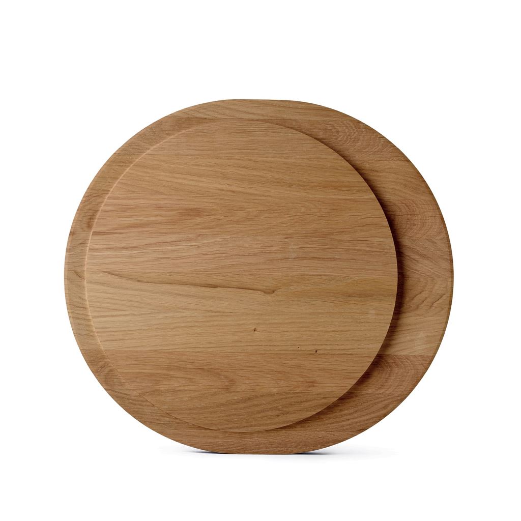 Den elegante Oak Board serie består af skære- og serveringsbrætter fremstillet af massivt FSC-certificeret egetræ. Brættets design er legende og udforskende med geometriske former. Afrundingen giver en dyb og bred rille til opsamling og den smukke buede kant giver et godt greb. Oak Board kan bruges som skærebræt og/eller som serverings bræt til retter som tapas, pizza, sushi, steg mm. Når brættet ikke bruges kan det med fordel indgå som en del af indretningen i køkkenet. Oak Board serien består af skærebrætter i forskellige størrelser.