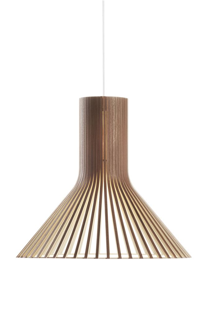 Elegant og unik pendel lanceret af finske Secto Design. Lampen har en masse sjæl og et utroligt unikt design, samt et praktisk, bredt lys, hvilket gør den perfekt til brug over spisebordet eller køkkenøen. Endvidere giver den et godt lys nedad, mens der skyder blidt lys ud igennem lamellerne og opad. Ikke nok med at lampen er smuk, er den også ansvarlig, idet Secto Designs lamper er lavet med stor respekt for nordens træsorter. Lampeskærmen er lavet af PEFC-certificeret, finsk birketræsfinér. Træet produceres i det centrale Finland, og transporteres derfor kun korte afstande. Under produktionen er der stort fokus på genbrug og sortering af materialer. Eksempelvis genbruges savsmuldet af produktionen til at lave træpiller til opvarmning. LED pære medfølger.