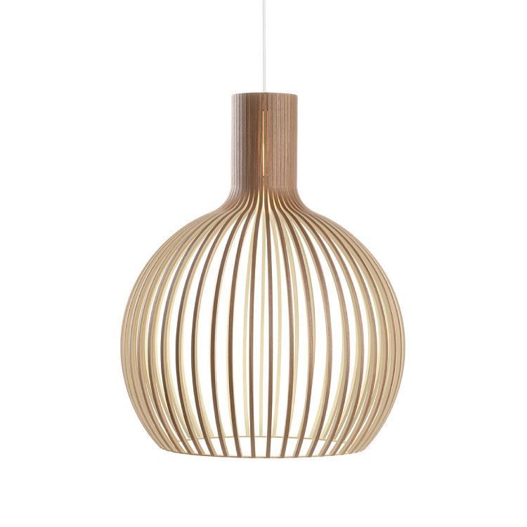 Elegant og unik pendel lanceret af finske Secto Design. Lampen har en masse sjæl og et utroligt unikt design, samt et praktisk, bredt lys. Derfor passer lampen utroligt godt ind over spisebordet, i stuen eller værelset, hvor den vil tilføje en smuk og klassisk detalje til indretningen. Ikke nok med at lampen er smuk, er den også ansvarlig, idet Secto Designs lamper er lavet med stor respekt for nordens træsorter. Lampeskærmen er lavet af PEFC-certificeret, finsk birketræsfinér. Træet produceres i det centrale Finland, og transporteres derfor kun korte afstande. Under produktionen er der stort fokus på genbrug og sortering af materialer. Eksempelvis genbruges savsmuldet fra produktionen til at lave træpiller til opvarmning. LED pære medfølger.