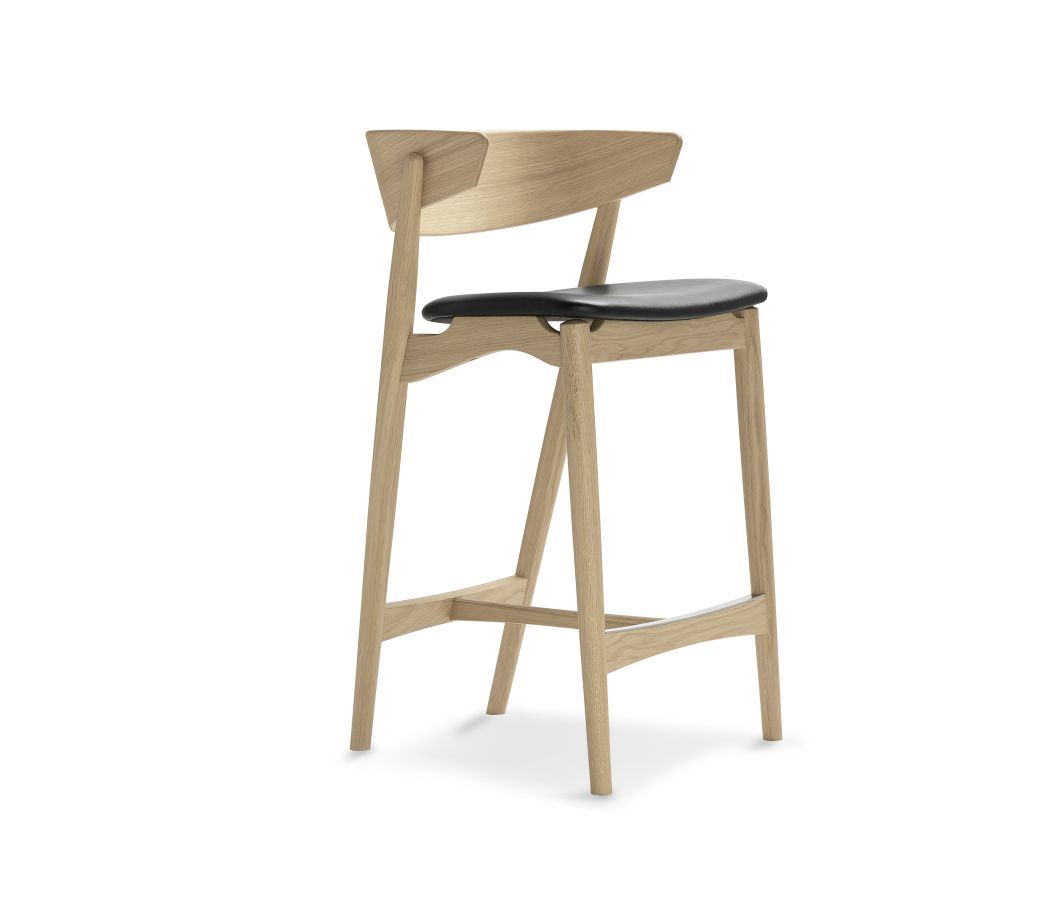 Sibast Furniture No 7 Bar Stool - Soap Oak / Black Leather