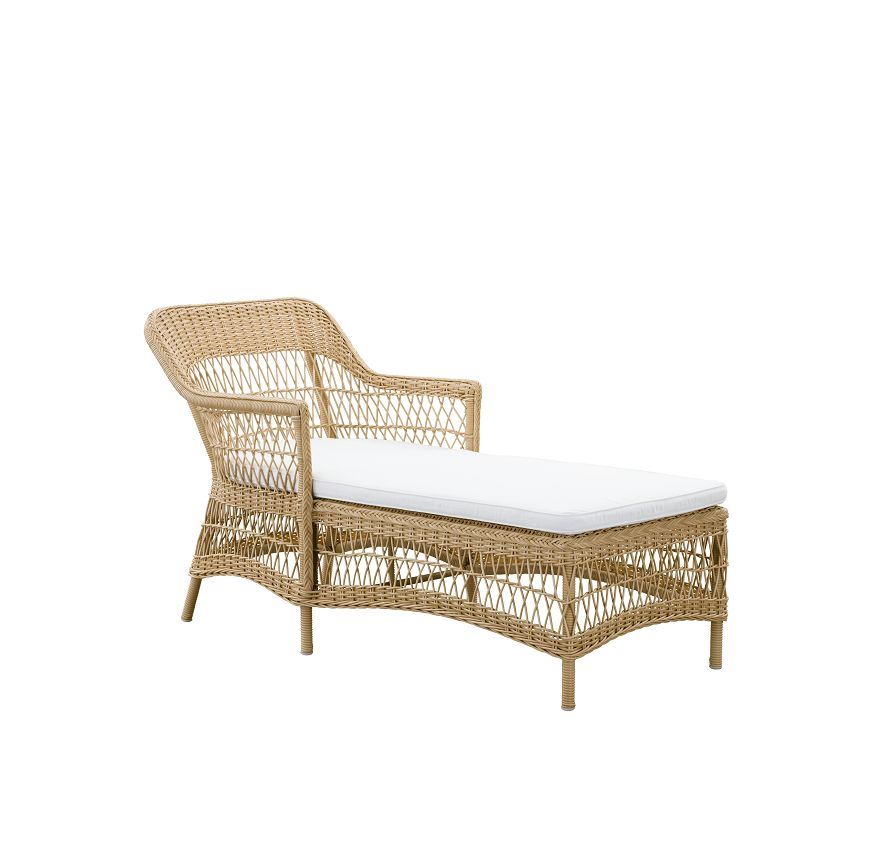 Skønt loungemøbel fra Sika-Design. Chaiseloungen har et romantisk og charmerende udtryk der indbyder til hygge og afslapning. Alle møblerne fra Sika-Design Georgia Garden serien er vævet i vedligeholdelsesfrie fibre, hvilket gør dem utrolig praktiske og holdbare. Grundet fibrene stolen er udformet af, kan den modstå solens UV-stråler og tåler derfor at stå udenfor året rundt, uden at det går ud over stolens design og kvalitet. Sammensæt møblet med andre møbler fra Georgia Garden serien og skab en sammenhæng af indretningen i din have eller terrasse.