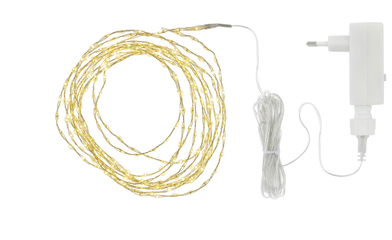 Fra Sirius kommer denne meget spinkle og fine lyskæde, som kan bruges til alverdens dekorationer. Kiki er lavet med guldledning og giver med sine mange fine små lys et rigtigt flot udtryk.
