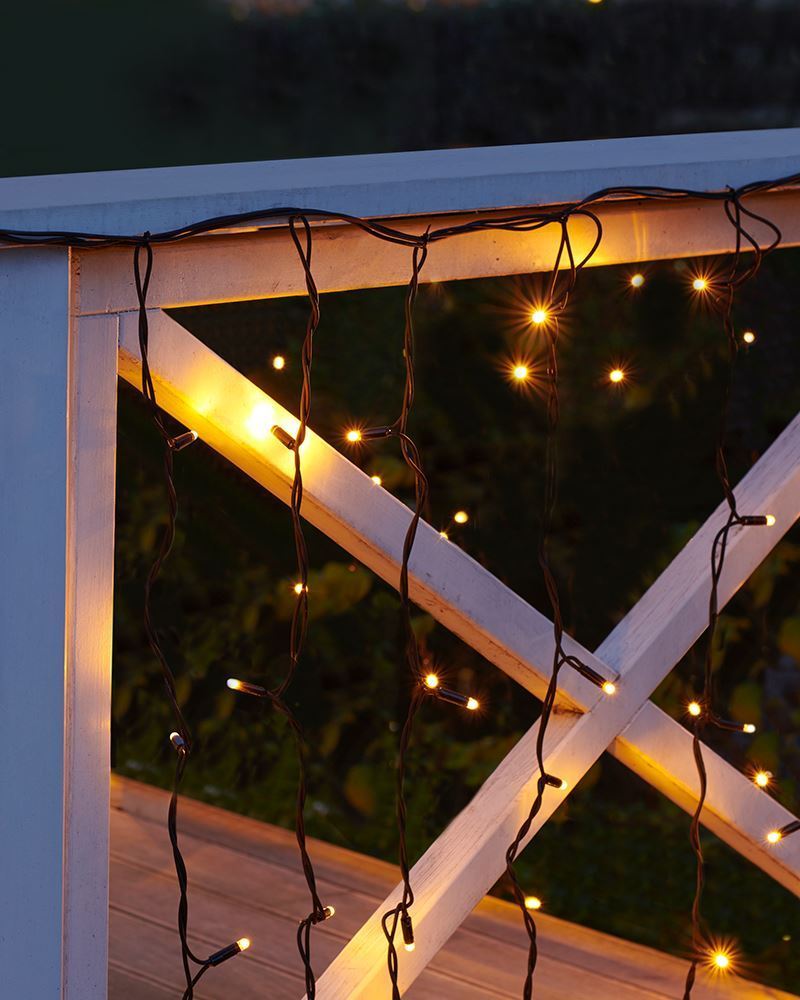 Leveres inklusiv stikprop og 1,5 meter ledning. Du kan udvide dette lysgardin med op til i alt 8000 Tech-Line LED lys. Godkendt til udendørs brug.
