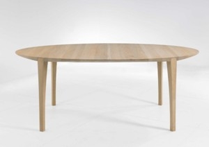 Flot spisebord fra Snedkergaarden. Spisebordet er dansk inspireret, rettere sagt Vejle. Mads K. Johansen fik ideen til designet under en togtur ved Vejlefjordbroen. Netop dette kan ses på bordet, da bordbenene buer ligesom de buede broelementer. Det giver et let og dejligt udtryk, desuden er bordet yderst stabilt, da der er specielt fremstillet beslag på. Spisebordet kommer rektangulært, ovalt og rundt, med en 40 mm plade. Bordet fås som et helplade bord, med udtræk på midten eller i enderne.