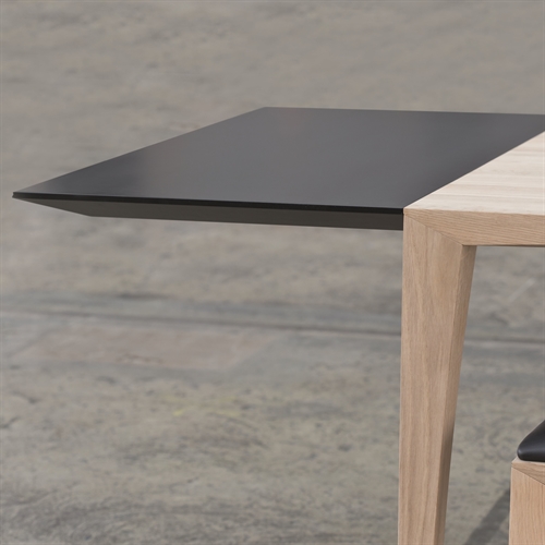 Flot tillægsplade til MATZ bordet ra Snedkergaarden. Spisebordet er dansk inspireret, rettere sagt Vejle. Mads K. Johansen fik ideen til designet under en togtur ved Vejlefjordbroen. Netop dette kan ses på bordet, da bordbenene buer ligesom de buede broelementer. Det giver et let og dejligt udtryk, desuden er bordet yderst stabilt, da der er specialt fremstillet beslag på. Spisebordet kommer rektangulært, ovalt og rundt, med en 40 mm plade. Bordet fås som et helplade bord, med udtræk på midten eller i enderne.