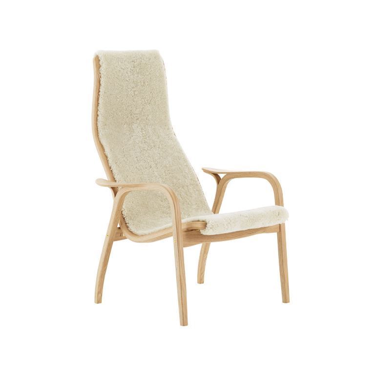 Swedese Lamino Lænestol - Lakeret Eg/Fåreskind HvidSkøn lænestol fra Swedese. Stolen er en yderst populær designklassiker, hvilket er nemt at forstå da den ha
