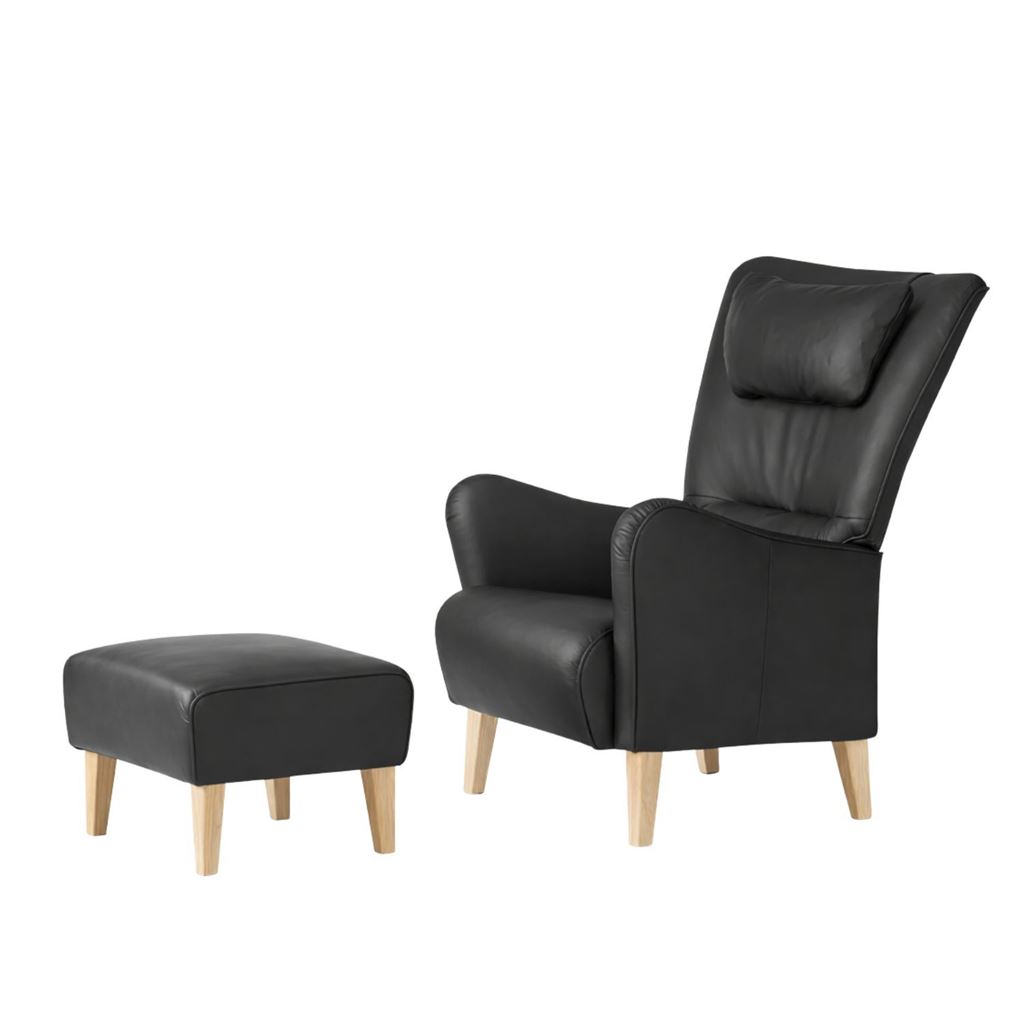 Swedese Stepp Lænestol inkl. Nakkepude og Skammel - Olieret Eg/Sort Nevada Læder
