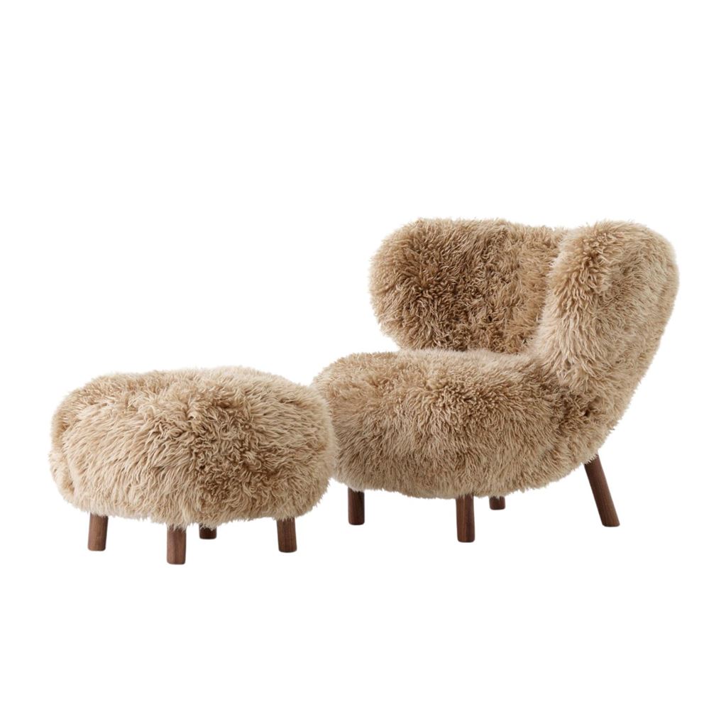 &Tradition Little Petra VB1 Loungechair & ATD1 Pouf - Oiled Walnut/Sheepskin Sahara