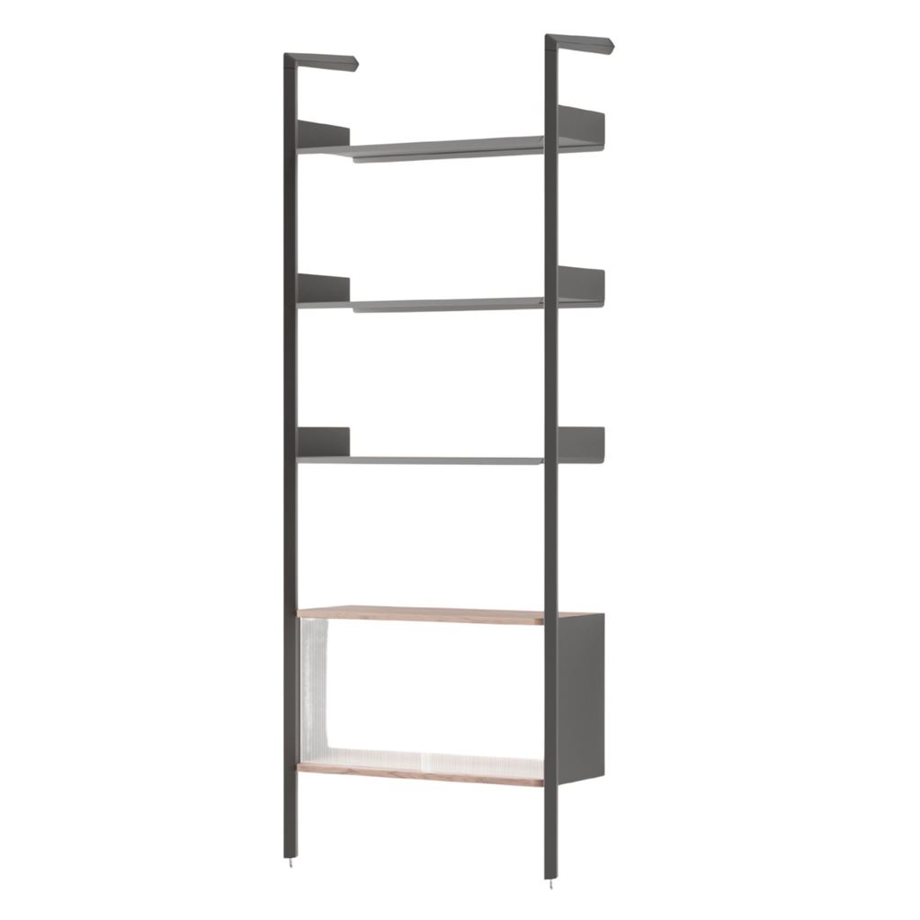 Dette modulære reolsystem forener funktion og form med et skulpturelt udtryk, der bidrager til både æstetik og anvendelighed. Designet med fokus på fleksibilitet er systemet skabt til at imødekomme de skiftende behov i moderne livsstil – uanset om det bruges i stuen, køkkenet, kontoret eller entréen.