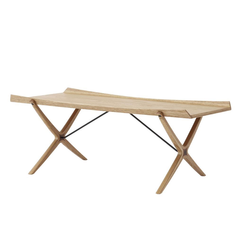 Oprindeligt designet i 1959 er X-bordet et fremragende eksempel på Hvidt & Mølgaards arbejde som kreative samarbejdspartnere. Genopdaget i familiearkiverne trækker bordet inspiration fra de unikke designs af gamle egyptiske klapstole.