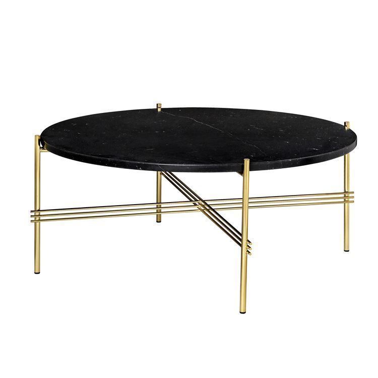 GUBI TS Coffee Table Ø: 80 cm - Brass Base/Black Marquina Marble