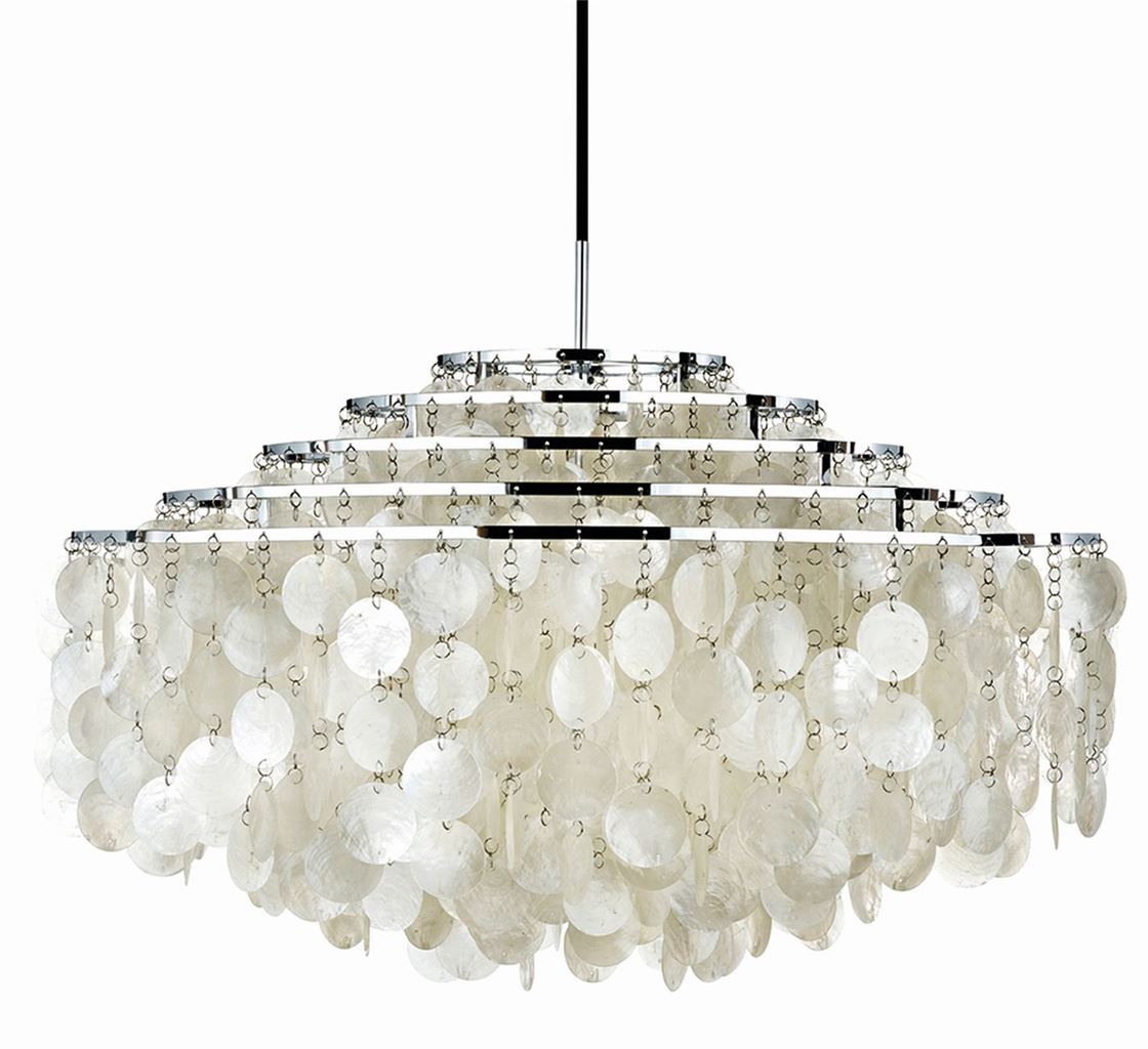 Fun pendlen er designet af Verner Panton i 1964 og er en rigtig fin og elegant pendel. Lampen har et skulpturelt udseende, og er lavet af perlemorsskaller holdt sammen af små metalringe. Lampens lys er blødt og er rigtig flot på grund af perlemorsskallerne som nærmest leger med lyset når det skinner igennem, hvilket får lampen til at se endnu mere elegant ud når den står tændt.