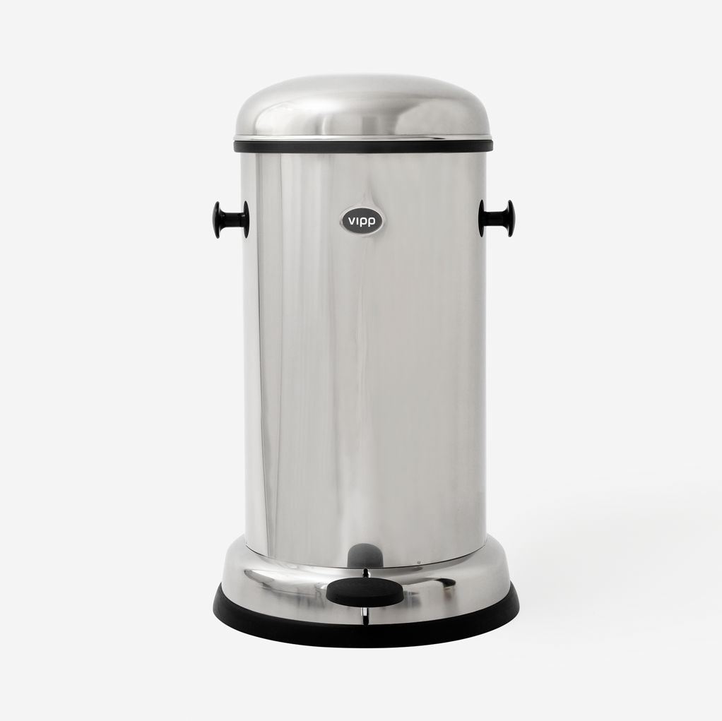 Skøn pedalspand fra Vipp. Pedalspanden fra Vipp er en klassiker helt tilbage fra 1939. Denne pedalspand skaber med sit minimalistiske design og rene finish et elegant og smukt udtryk. Spanden er af rustfrit stål. Låget har en dæmpemekanisme, der får låget til at lukke sammen i en meget blød bevægelse uden smæk. Pedalspanden er også udstyret med to gummiringe, et omkring låget der sørger for lufttæthed og et i bunden der skåner dit gulv. Pedalspanden er en kendt designklassiker med nordisk design, der passer ind i de fleste hjem.