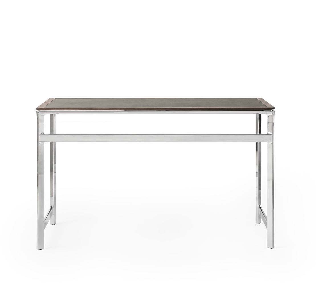 Hjemmekontorbord der er lavet af rå aluminium og marmor. Bordet er designet til at kunne ses fra alle vinkler, uanset om det står frit eller er placeret mod en væg. Designet tilføjer materialer af høj kvalitet og raffineret detaljerigdom til ethvert arbejdsmiljø. Perfekt sammen med Vipp Swivel stolen, har bordet en poleret aluminiumramme og samlinger, der spejler dem, der findes på stolen, hvilket skaber et sammenhængende udseende, når stolen skubbes ind under bordet.