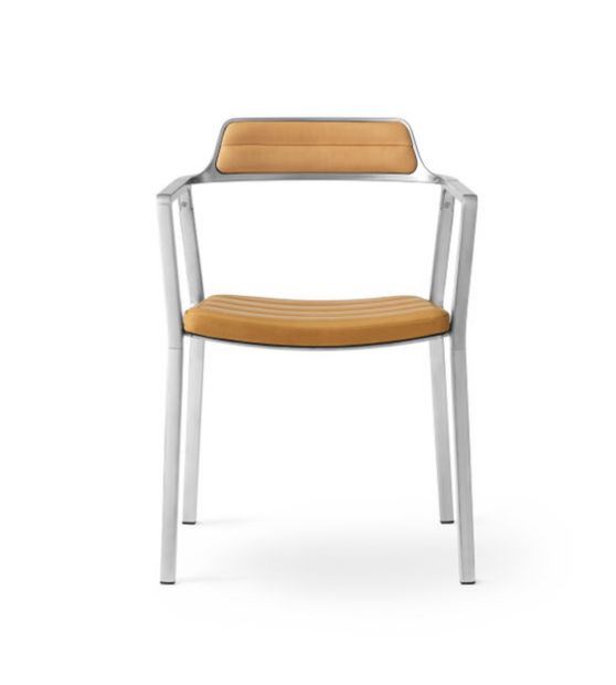 I designet af Vipps allerførste stol kombineres Vipp´s signaturmateriale, pulverlakeret metal med taktile polstringer. Vipp stolen er velegnet til spise- eller dagligstuen. Stolen har en poleret aluminiumsramme med afrundede armlæn og en smal rygstøtte. Kombinationen af gedigne materialer og industriel finesse giver en tydelig reference til Vipp´s designtradition.