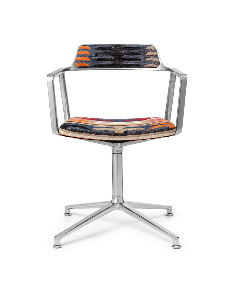 Denne specialudgave af Vipp Swivel-stolen er skabt til Vipp Todos Santos gæstehus i Mexico og er betrukket med et levende jacquard-stof fra det anerkendte fran